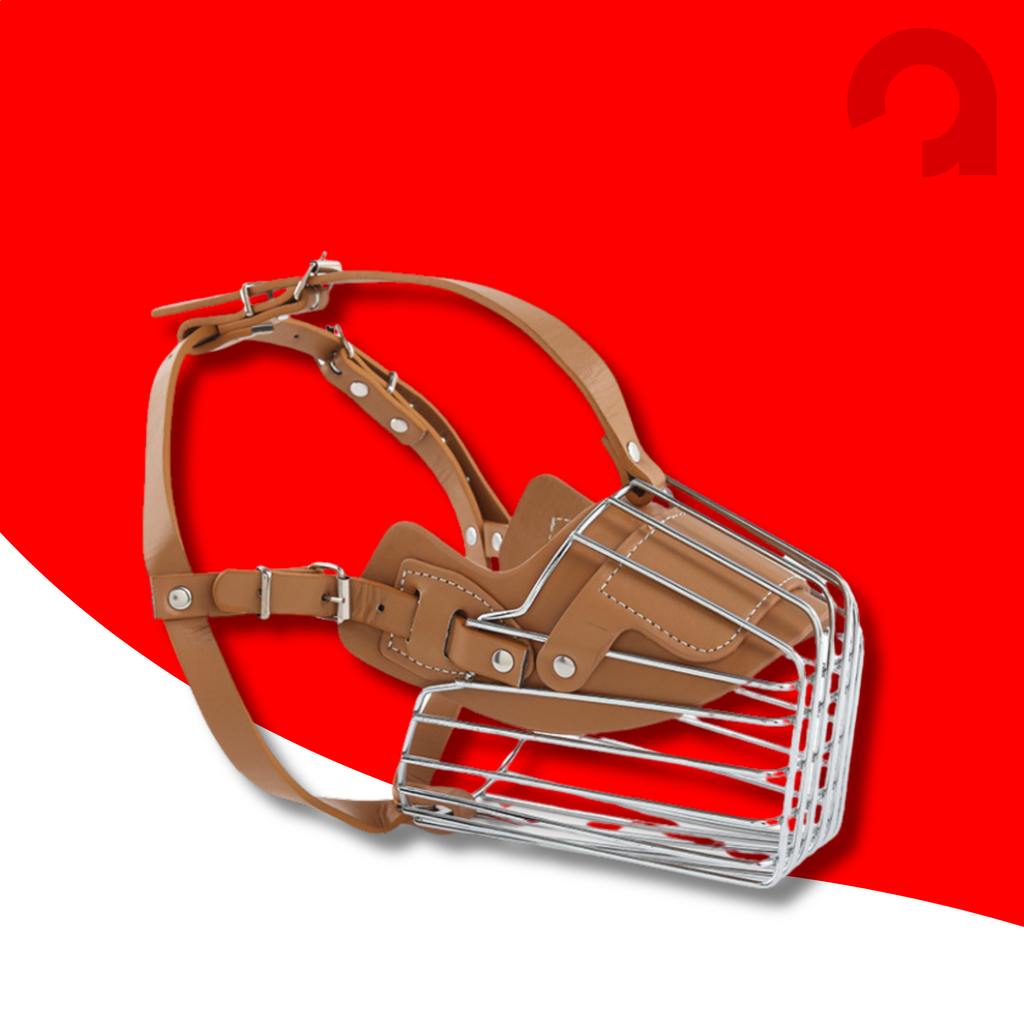 Uma focinheira ajustável para cães, projetada para evitar mordidas enquanto mantém o conforto e a respiração do animal. Feita com tiras macias de borracha e couro genuíno de alta qualidade, proporciona segurança sem comprometer o bem-estar do seu pet.