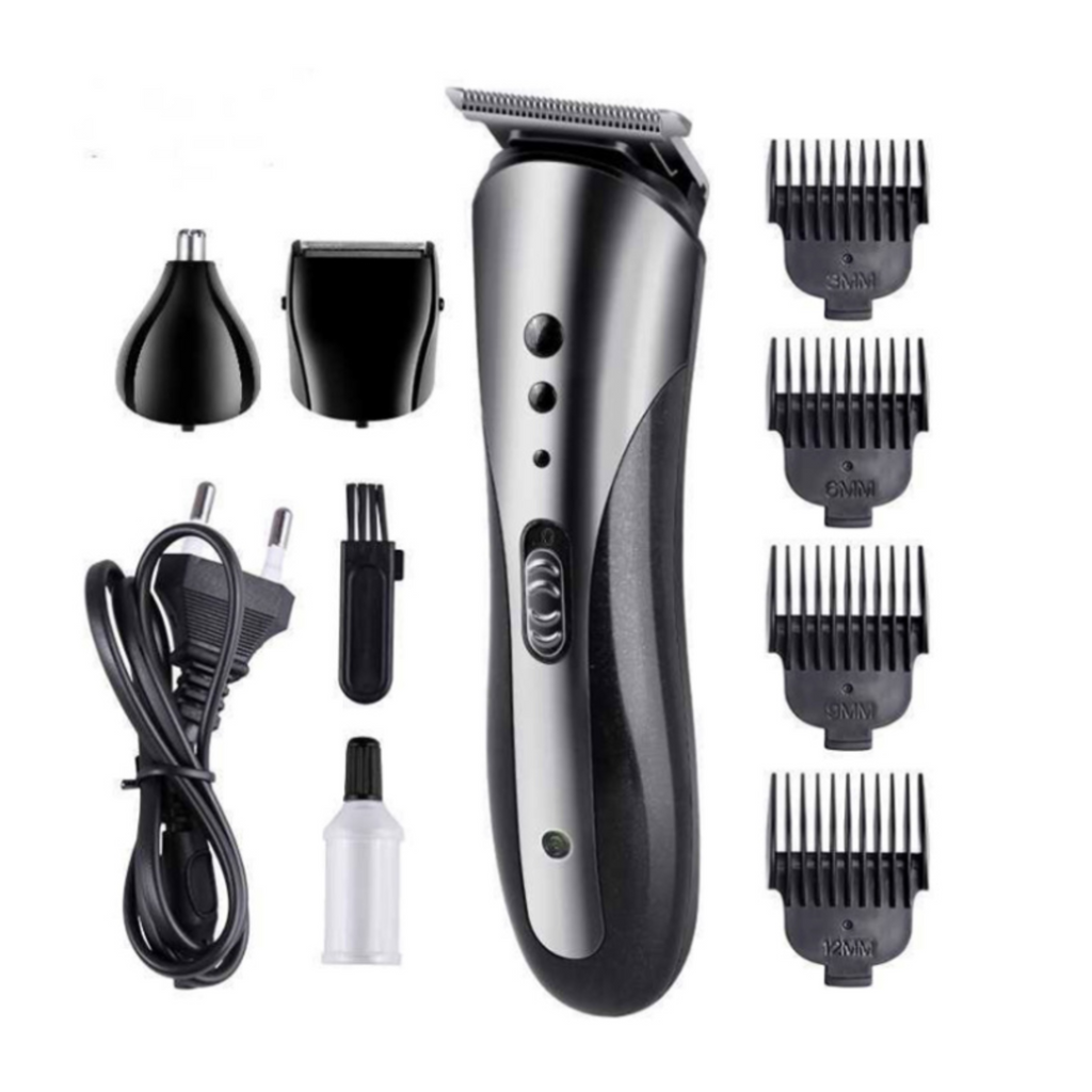 Uma máquina de cortar cabelo elétrica multifuncional, projetada para oferecer cortes de precisão, barbear prático e aparo eficiente dos pelos do nariz. Seu design moderno e ergonômico garante conforto e facilidade no uso, trazendo a experiência de barbearia para dentro da sua casa.